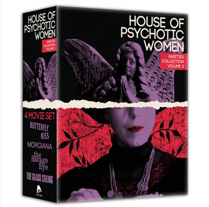 Severin Films and producer/curator/author Kier-La Janisse are back with another set of female-focussed hidden horror gems, with the c. Included in this set are Butterfly Kiss (1995), Morgiana (1972), The Savage Eye (1959) and The Glass Ceiling (1971), all restored from original source elements and with 10+ combined hours of Special Features, including interviews, commentaries, short films, alternate scenes and much more. A must-have for psychotic women and fans of them alike!