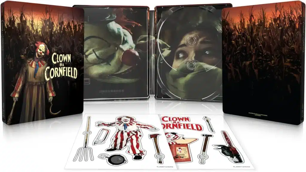 Thank the horror gods for the good folks at Shudder who, unlike other certain big streaming platforms we could name, have no qualms about giving some of their best and most beloved pics the physical media release treatment. The 4K Ultra HD release of Eli Craig's slasher Clown in a Cornfield features a special-edition SteelBook, with an outer illustration of the villainous Frendo standing amongst the titular cornfields, with inner art featuring part of his reign of terror from the film. The physical release will also feature commentary from the filmmakers, as well as limited edition magnets, featuring a “Pop Out” Frendo and his various deadly weapons, which will make a perfect spooky season ornament come Halloween.