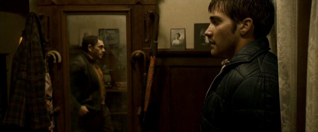 Image Credit: IMDB David Fincher's Zodiac has more than one intensely chilling scene in it. This one is the scene where Jake Gyllenhaal, as Robert Graysmith, follows up a lead and goes to Bob Vaughn's house. While waiting for Vaughn to find something in the basement, he hears what sounds like footsteps on the floor above. The tension in the scene is extraordinary, without anything overt happening. Graysmith is so freaked out that he tries to escape, but there is nothing.