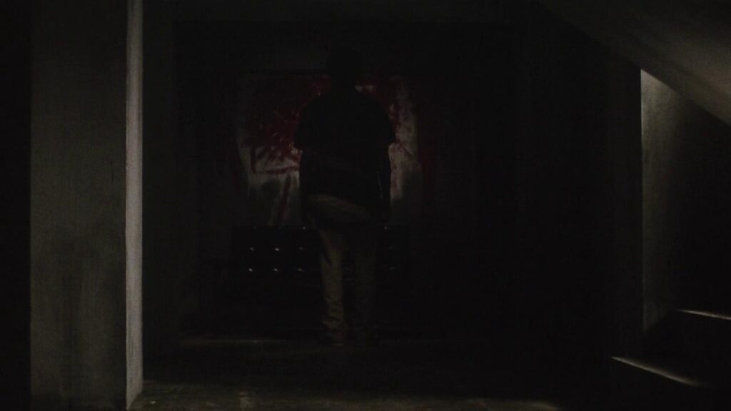 Image Credit: IMDB Daniel Myrick and Eduardo Sánchez's groundbreaking found footage film has many eerie moments. The film is remarkably free of the usual gore and violence, but the most terrifying moment is at the end when Heather finds Mike standing up against a wall in the basement. I have experienced a theater full of people gasping in terror because of the shot with all the handprints on the wall, but that is a mere prelude to the scene in the basement.