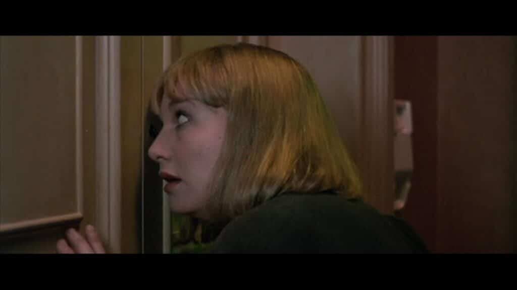 Image Credit: IMDB Dario Argento's Opera has a little fun with eyeballs as well. As Daria Nicolodi's Mira demands to see the face of the man who claims to be the policeman sent to protect Betty, he flourishes a gun. Uh oh! It plays out exactly as you would expect, but the idea that a killer would shoot someone through the peephole while the person refuses to get out of the way never ceases to be enthralling. Argento ensures you see the bullet going through the peephole, a perfect fit, and then hitting Mira in slow motion. Perfecto. It had such an effect that a similar situation was used in Lethal Weapon 2 for comedic purposes. The quote from Martin Riggs is, “After I shoot you through the door, you can examine the bullet. Open up!”