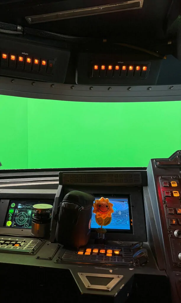 This was my view from space in case you were wondering what it looks like up here. Sorry and thank you to our editor, Erick Lorinc, for dealing with my teal hair against a green screen! There were about two million buttons in the cockpit, and Danny and I pressed at least half of them.