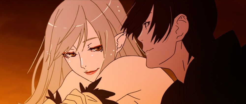 Editing the Kizumonogatari trilogy together into a single release, Kizumonogatari: Koyomi Vamp sees high school student Koyomi Araragi (voiced by Hiroshi Kamiya) surviving an encounter with the vampire Kiss-Shot Acerola-Orion Heart-Under-Blade (voiced by Maaya Sakamoto). The film also features an ending theme from French musician Clémentine.