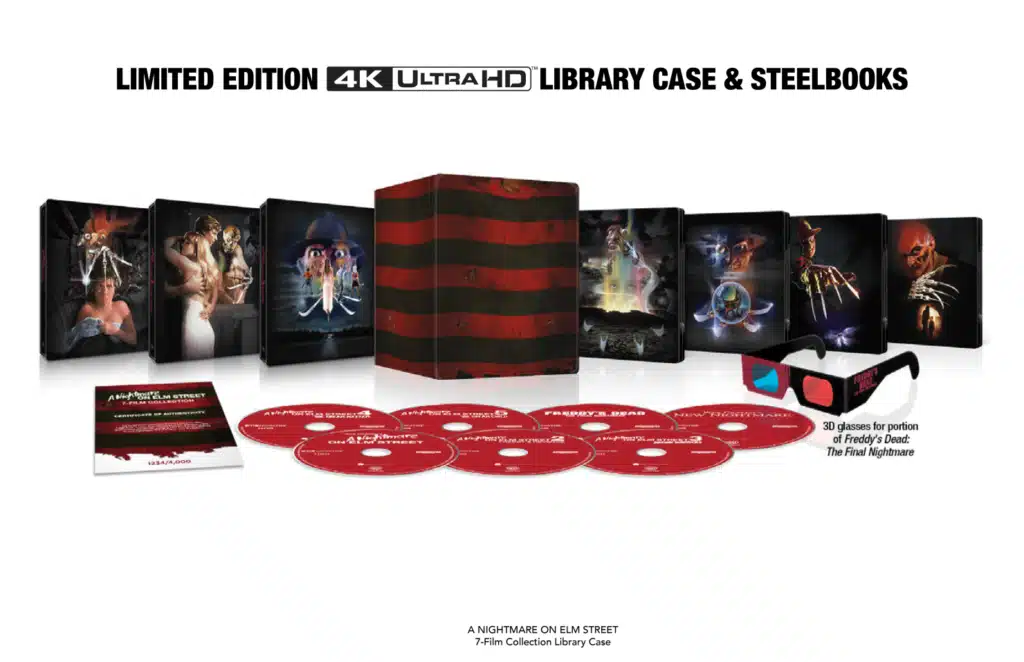 The collection also includes an alternate ending of Freddy’s Dead: The Final Nightmare presented in anaglyph 3D and complete with 3D glasses in the physical collection.