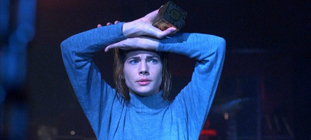 Hellraiser III: Hell on Earth is the third entry in the Hellraiser franchise. The club owner, J. P. Monroe, buys the Pillar of Souls, where the Cenobite Pinhead is trapped and starts to drag unfortunate clubgoers with the chains seen in the first two films. Joanne “Joey” Summerskill, a reporter, finds someone wounded by chains in a hospital and decides to investigate. The movie stars Terry Farrell and Doug Bradley, who plays the dual role of Pinhead and his human form, British Army Captain Elliot Spencer.