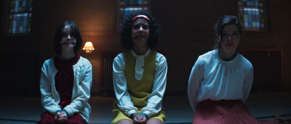 The Christmas Killers are on the loose, and the holidays have come early in Jenn Wexler's The Sacrifice Game. The film is set at a girls' boarding school over Christmas break in 1971. Samantha and Clara, two students staying behind for the holidays, must survive the night against uninvited visitors.