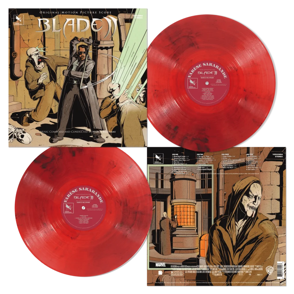 Releasing on May 16, the Blade and Blade II scores will be pressed on “Bloodbath” red vinyl exclusively via Barnes & Noble, and “Blood Splatter” clear and black translucent vinyl in a limited-edition run of 500 on the Varèse Sarabande store.