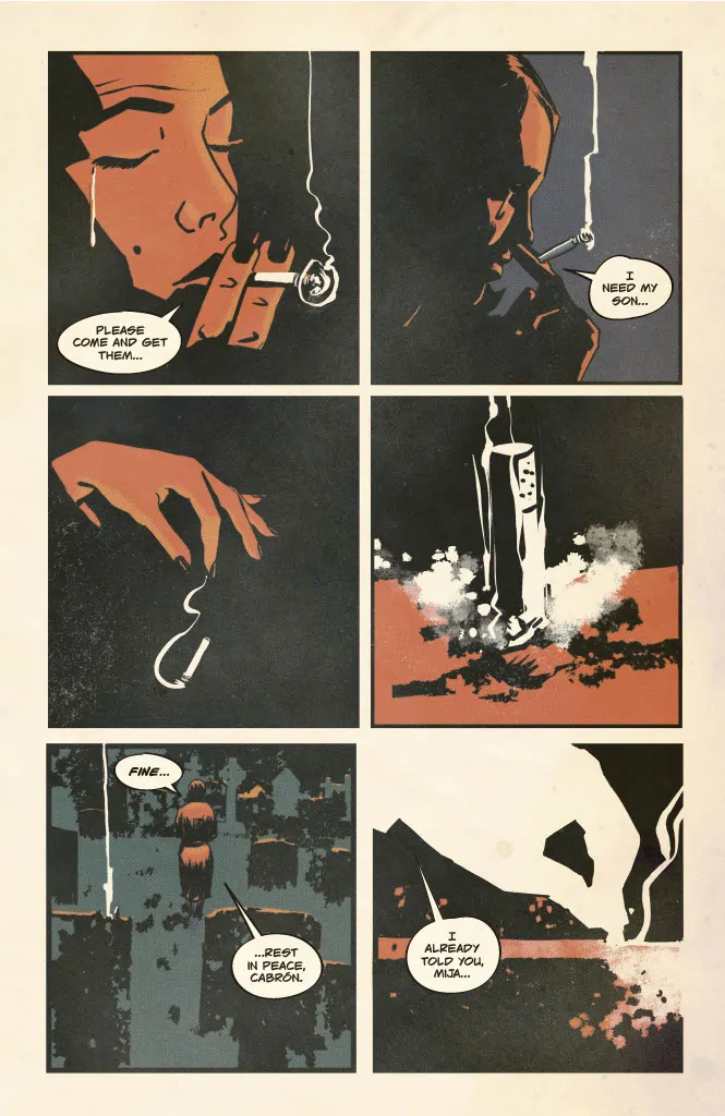 The first issue introduces us to Calavera when he was still alive, a no-nonsense private investigator rescuing people from tragedy. But, after he’s shot, we pick up five years later, when his partner in crime finds herself in grave danger. With her son kidnapped, she heads to Calavera’s grave to summon him, bringing the skeletal PI back from the dead to investigate a brand-new mystery.