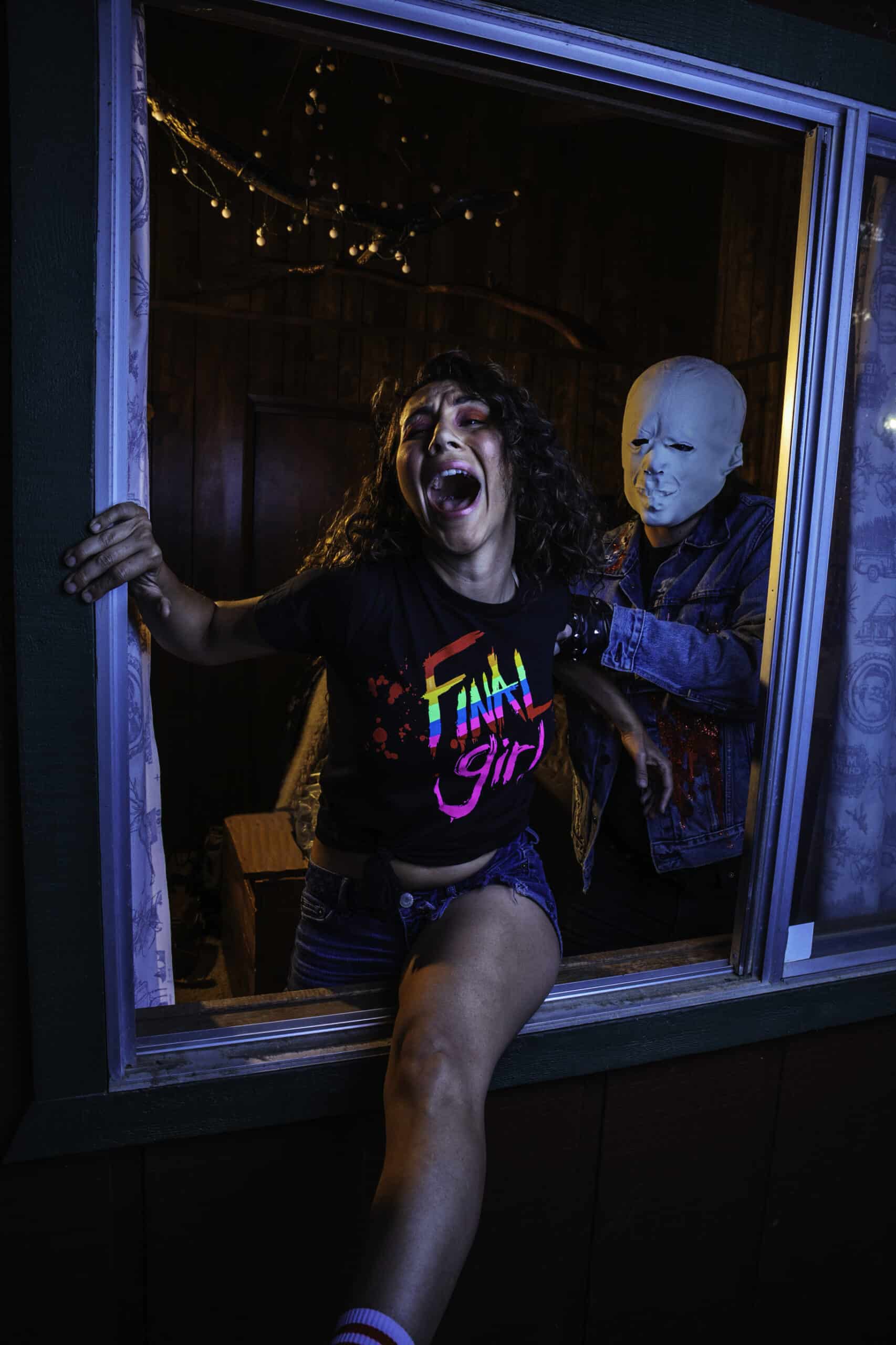 That kind of social media exposure helped Adam and his husband, Adam Huss, officially make Small Town Weirdo a business. When Adam's painted Final Girl and Boy jackets started to garner a lot of attention, he wanted to offer them at a lower price point, so he decided to have the designs screen printed onto shirts. Judy Greer purchased three shirts from Adam and gifted them to the ladies of Halloween. Fast forward several weeks later to find Jamie Lee Curtis on Instagram, wearing her final girl crop top on the set of Halloween Ends.