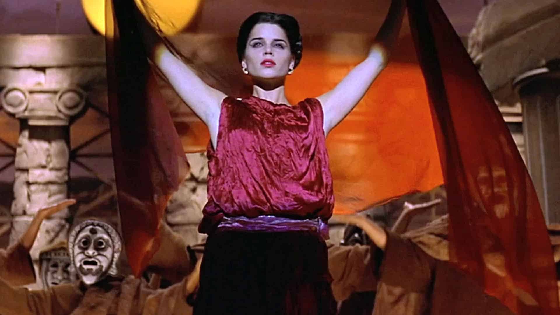 Worse still, the people paid to protect these women refuse to take them seriously. In Black Christmas, the police dismiss Jess’s sorority sisters, Barb (Margot Kidder) and Phyl (Andrea Martin), when they report Clare (Lynne Griffin) missing. Jess tells Clare’s boyfriend, Chris (Art Hindle), “I think they figured she was shacked up somewhere.” It’s only when Chris, a burly young man, barges into the police station to complain that the police take any action regarding Clare’s disappearance. Sergeant Nash (Douglas McGrath) is just as dismissive when Jess complains about the violently obscene phone calls they’ve been receiving from Billy, condescendingly telling her that it’s probably “a little joke.” The police in Scream 2 use the same language when the killer sends Sidney a threatening DM in the library: “Sid, it’s probably just a sick joke.” According to the police, in both cases, men threatening women’s lives isn’t a horror story to take seriously; rather, it’s comedic and insignificant. Sidney, starring as Cassandra in the university play, is cursed yet again to speak the truth yet be dismissed at every turn.