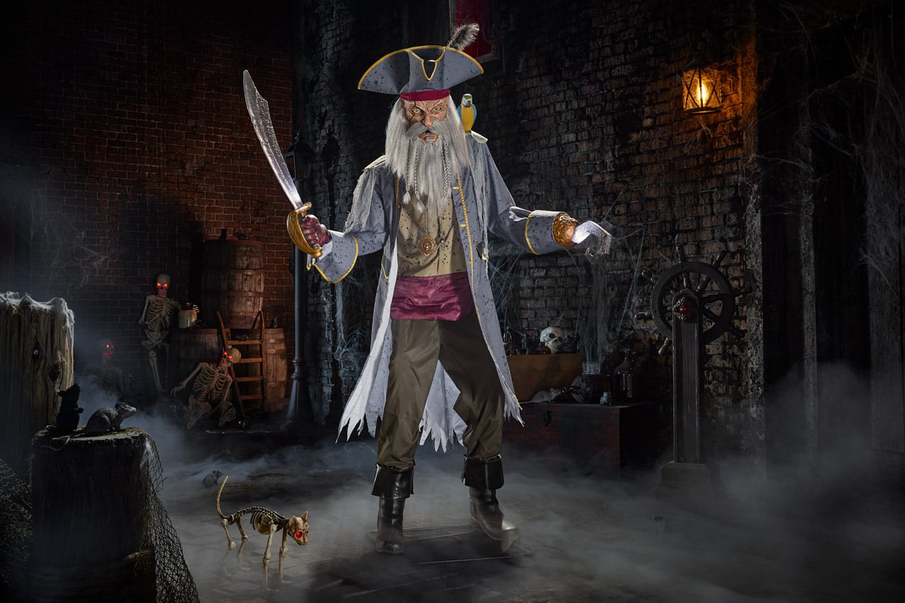 Another standout this year is the Orlok-like 7-foot Animated Victorian Vampire. The detailing on his coat and face (look at those eyebrows!) is pretty impressive. There's also a pirate in the mix, in the form of the 7-foot animated Captain Cuts.