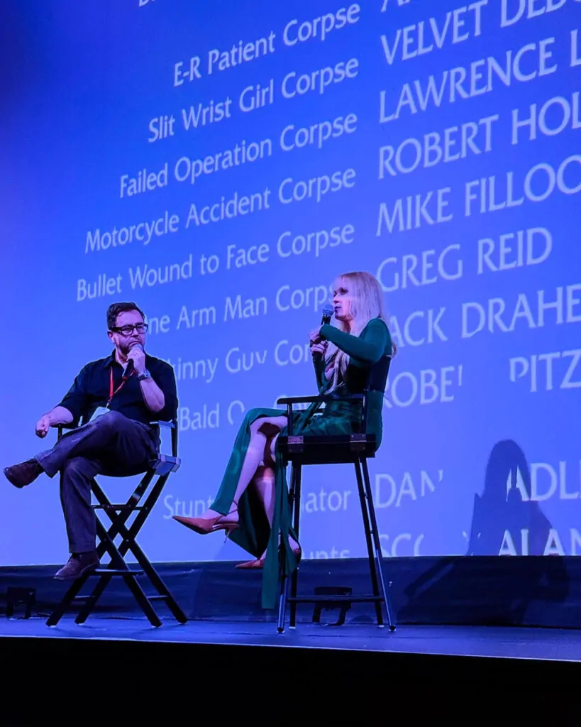If you're familiar with the movie, you'll know there's an iconic scream at the end when the screen cuts to black and the credits begin to roll. Since Barbara was in the house, Phil thought it would be fun to have her do the scream live. And right on cue, she did. Now, I've seen Re-Animator many times, but I can say with absolute certainty this is the only time I've had Barbara Crampton do the scream live.