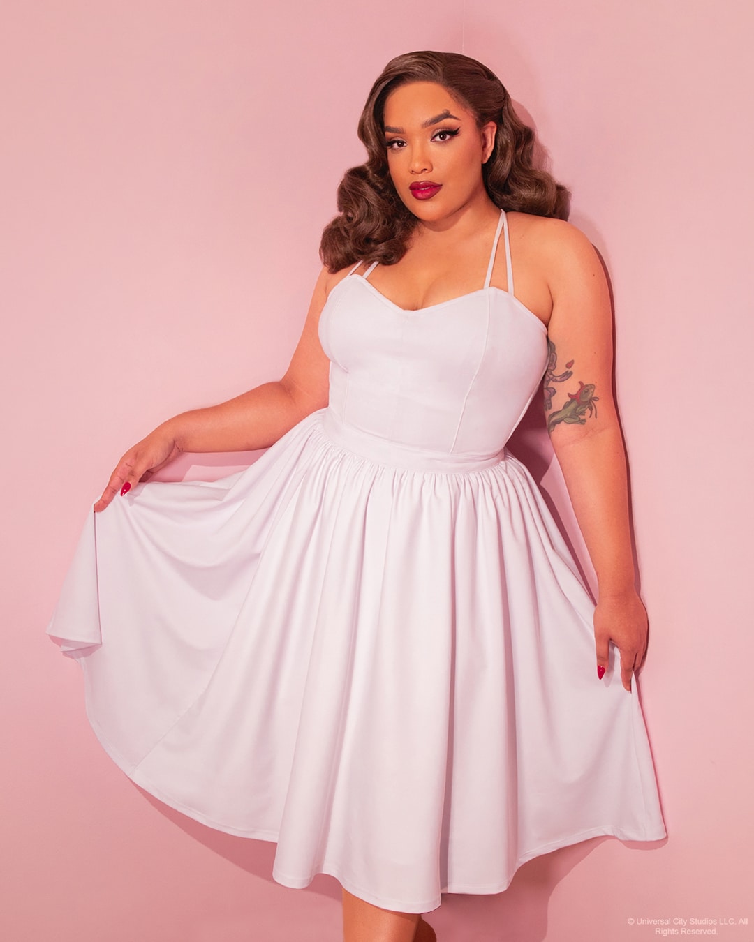 “Whether you’re a devoted fan of vintage horror films or a fashion aficionado, our Creature From the Black Lagoon collection offers a unique fusion of film history and vintage aesthetics with a contemporary design,” said Vixen CEO & Designer Micheline Pitt of the collaboration, itself a celebration of the seminal 1954 film and the titular creature at its center, famously designed by Budd Westmore and Millicent Patrick. “Our goal was for fans to be able to immerse themselves in the magic of classic cinema with these iconic looks, brought to life for the modern wardrobe.”