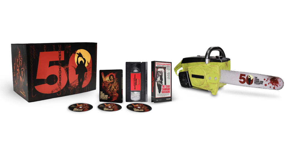 The multi-disc set includes the new 4K UHD edition of the 1974 horror classic, a Blu-ray bonus disc containing new extra features, and an exclusive VHS release of the movie. Four feature commentaries, including with Hooper, and late, great stars Marilyn Burns and Gunnar Hansen, are also included.
