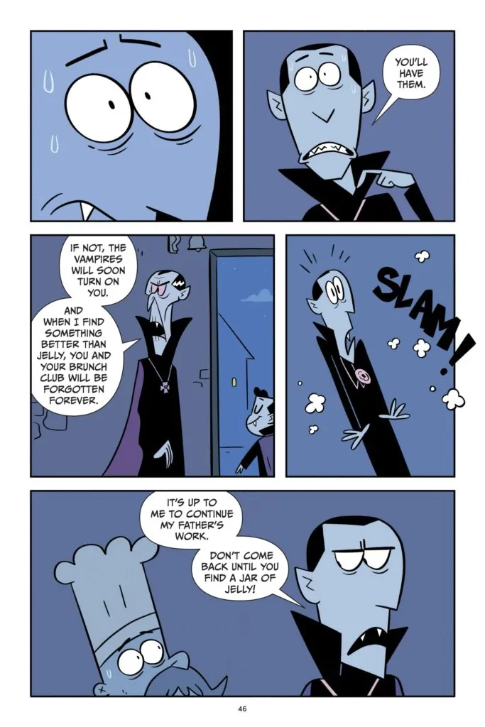 But it’s not just jelly donuts at stake. When townsfolk start to go missing, Dracula suspects Constantine has far more sinister motives lurking that could threaten everything vampires and humans have worked for. With the help of his chef and human friend, Elena, Dracula must find a new energy source before every vampire and human turns on him and he loses his coveted brunch club forever.
