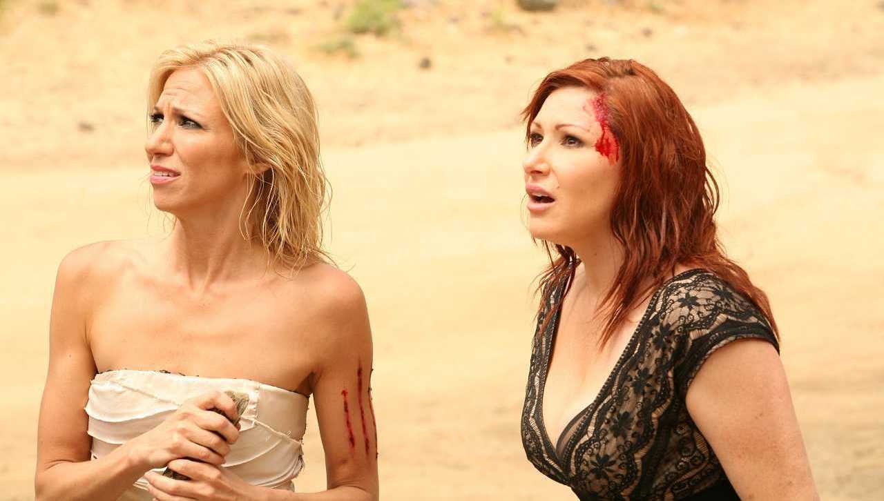 Both actresses agree that they were significantly helped along by director Mary Lambert, the veteran of the Pet Sematary films who made her Syfy helming debut with this project. (In fact, this is a pretty unique film for its genre in having not just two women in the leads, but in the key creative spots as well; the script was written by Naomi L. Selfman.) “Pet Sematary is one of my favorite movies!” Tiffany raves. “It’s funny, my son and I had just watched the movie about two months prior—he had never seen it before—and then I got the call that Mary was the director on Mega Python, and I was like, ‘Yeah!’ Mary brought the full force, and really made my dreams come true. I just adore her, and I’m so appreciative. You know, a lot of times we had lines where we were like, ‘Really? Where’s this coming from?!’ but especially when it came to the comedy factor of the movie, she had a vision, and it really played through.”