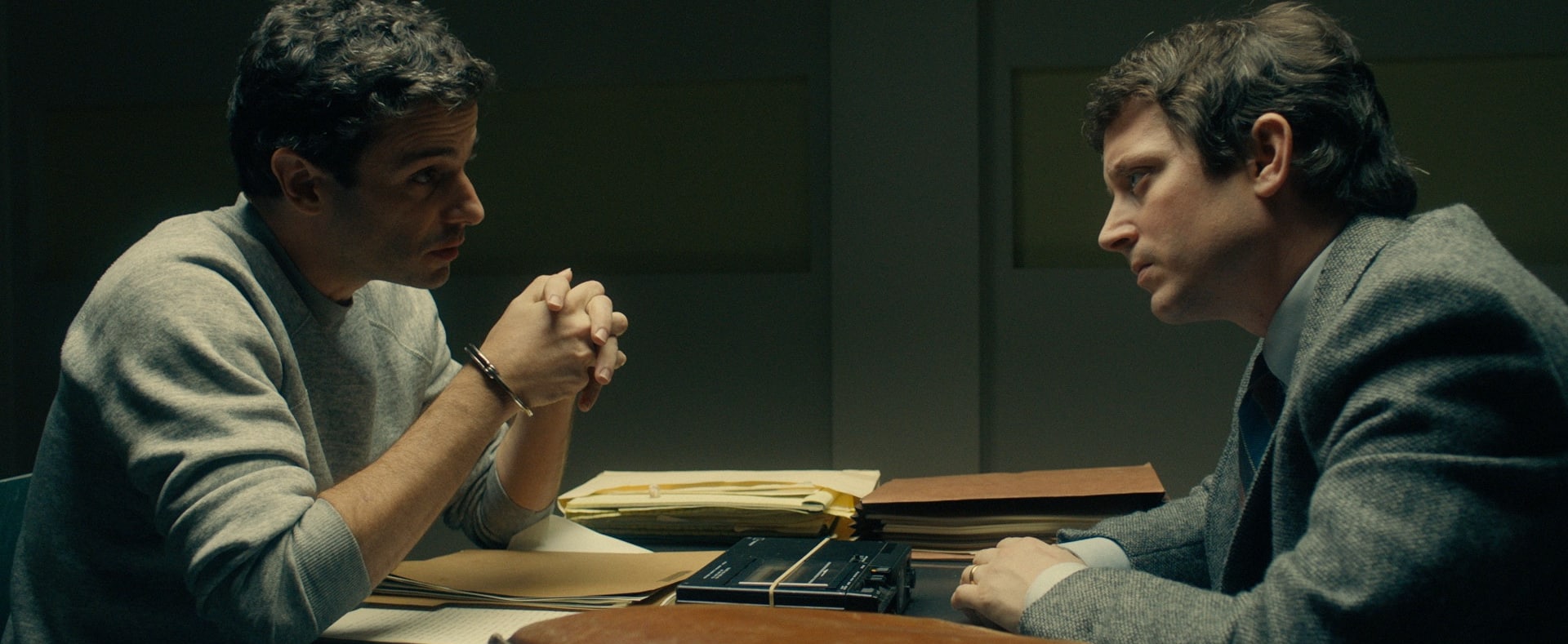 SEALEY: I have a background in theater, so I thought, all right, let’s just approach this as we would a play, a sort of in-the-round kind of approach where we could move the camera, a.k.a. the audience, all the way around the table. In real life, it was just the two people in two chairs and one table in the room, and that was it. I wanted to replicate that as authentically as possible; I wanted it to have that sad, empty, dry feeling. The other thing is that both Elijah and Luke are just stunning to look at, and they both are so expressive, so we were kind of living on them and on their faces. They’re both that kind of actor you can watch forever, and so we lucked out in that sense, and there wasn’t a boring moment.