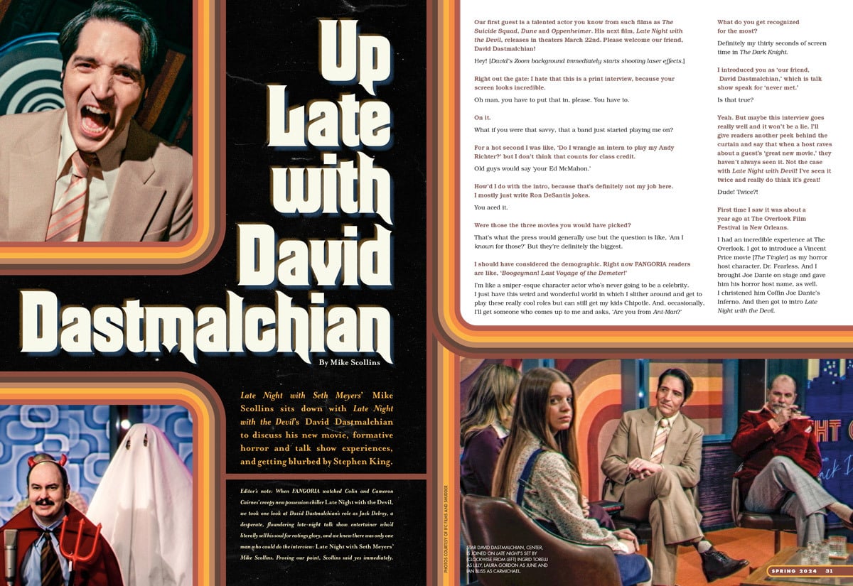 Keeping the quirky interview energy going, Late Night with Seth Meyers’ Mike Scollins interviews Late Night With The Devil’s David Dastmalchian about the actor/producer’s new demonic thriller, which takes place in real time during the taping of a ‘70s talk show. This one knocked festival audiences on their asses; prepare yourself.
