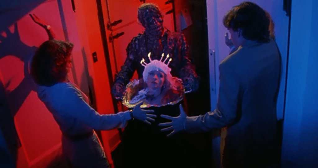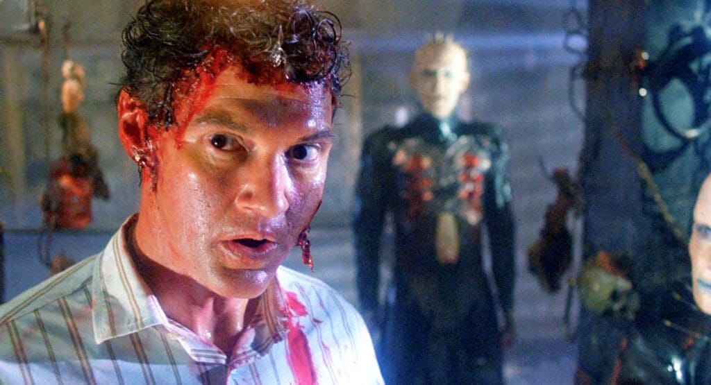Larry, Larry, Larry. Facepalm. Everyone's favorite oblivious goof is the endearing, sweet dad to kick-ass protagonist Kirsty, and all of her hopes of connecting with her father are derailed by his new wife, Julia. Julia is up to the old diddling biz with Larry's now-skinless brother Frank who's been holing up in the attic, brought back to life by his brother's spilled blood. They figure do it one better by taking poor Larry's skin and escaping. Frank, now walking around in Larry's skin, gives actor Andrew Robinson carte blanche to really flex the duplicity and overall ickiness of Frank's code of conduct, but I can't help but think, what in the hell made Larry think Julia was a good choice? Next up-