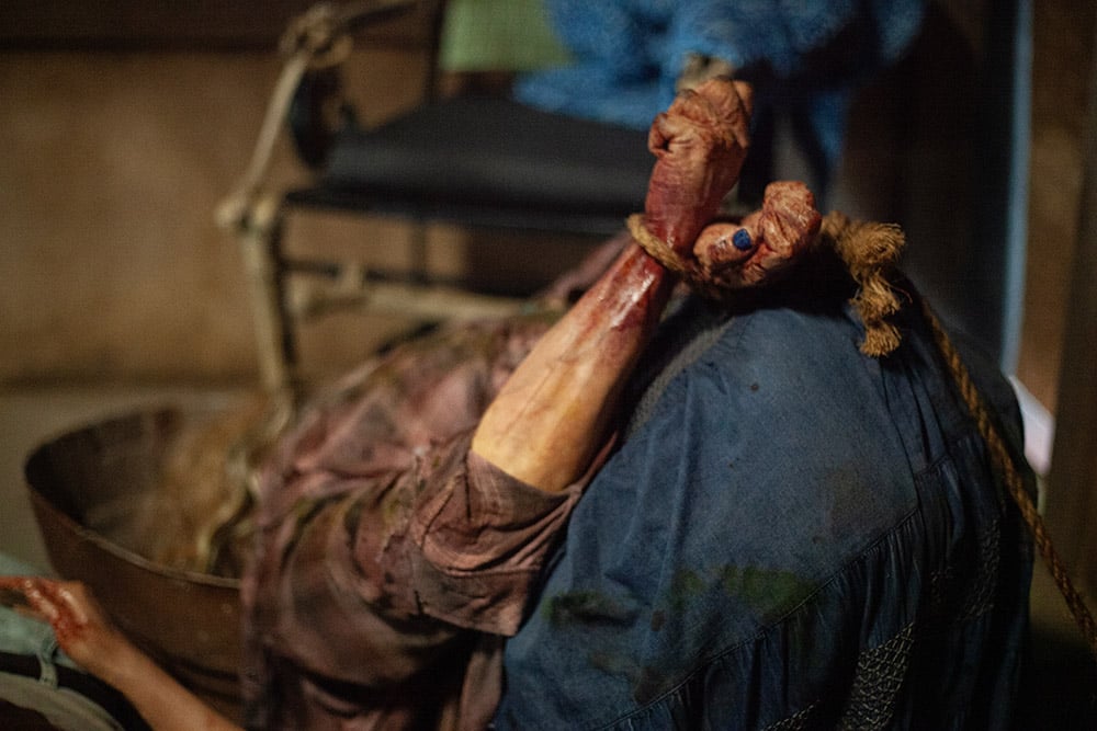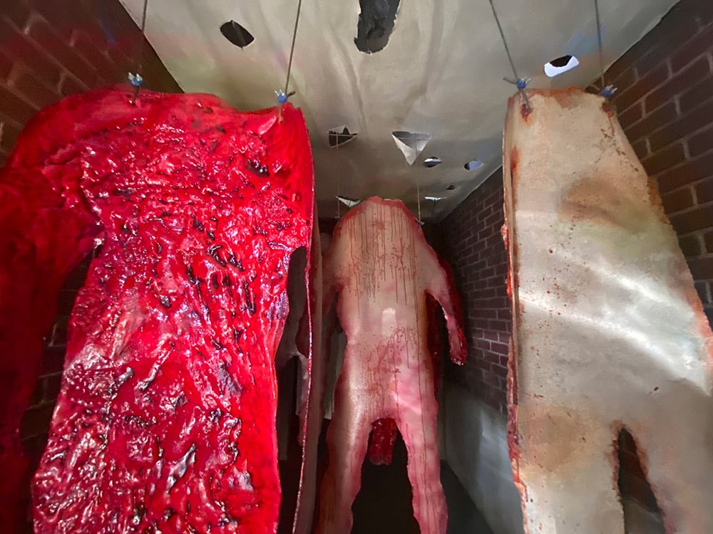 Venturing further into the slaughterhouse, guests will encounter the many different iterations of Leatherface through the various rooms. Murdy researched the meatpacking industry’s history and procedures, crediting Chicago meatpacking houses of the 1860s with creating the first assembly (or disassembly) lines.