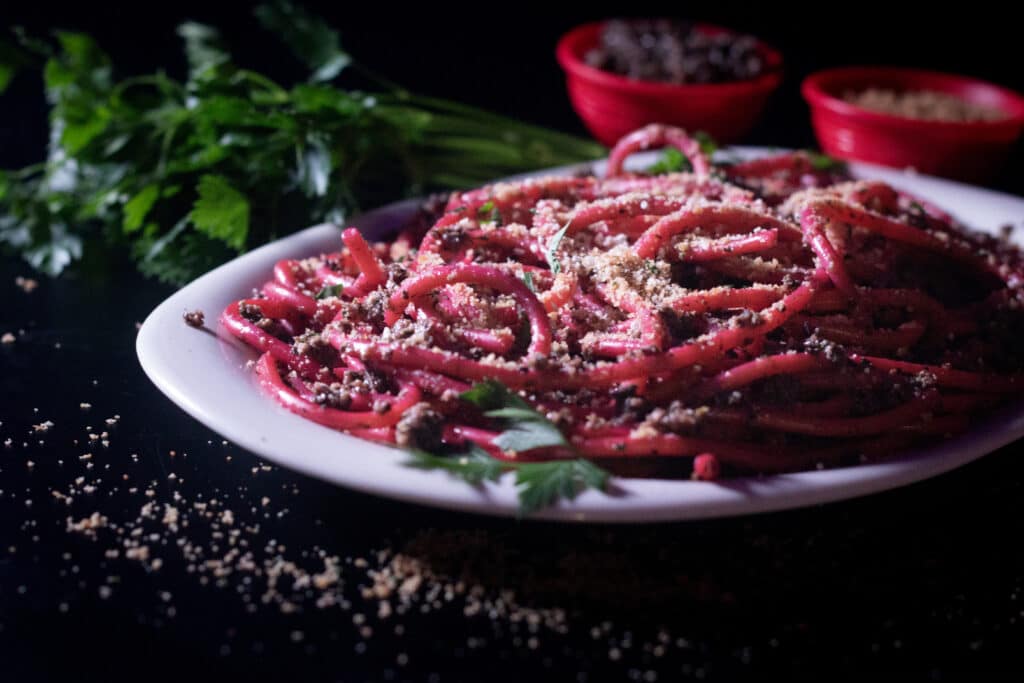 Halloween Brunch Recipe With A BABADOOK Twist: Dirt And Worms Bucatini