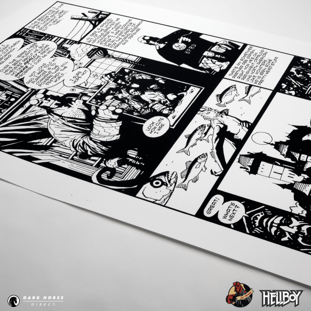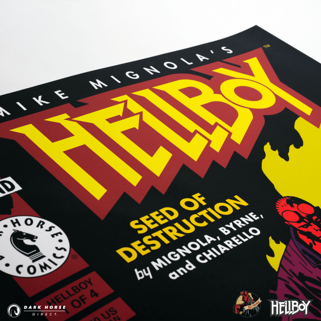 The 10-color Hellboy 30th Anniversary: Seed of Destruction #1 Screenprint goes for $75.00 and is limited to 500 units, while the black-and-white Hellboy 30th Anniversary: Wake the Devil Comic Ad Screenprint is $60.00 and limited to 250 units. Both of them are available to pre-order now exclusively from Dark Horse Direct.