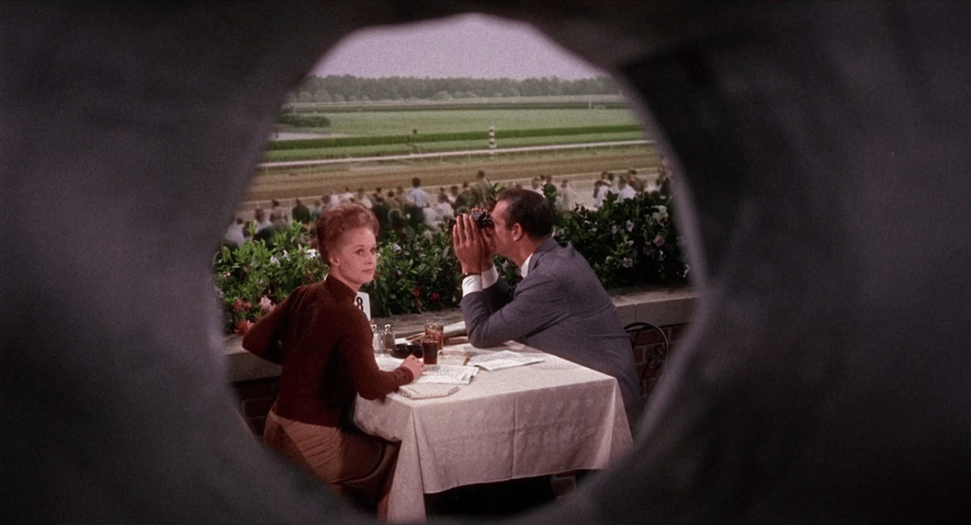 Unusually, the words of the highly problematic Mark contain insight into the underlying pain of his future wife, as he asks a colleague to check on her: “I think she's hurt, find out.” This incident links thematically to the couple's forthcoming visit to the racetrack, where Marnie's eye catches the jersey of a horse jockey, which is covered in large red circles. Is this indicative of the small ink spot on Marnie's blouse growing and multiplying? Or does this represent her attempting to join the dots together, the dots that will eventually lead her to the blood-soaked memory that has been haunting her?