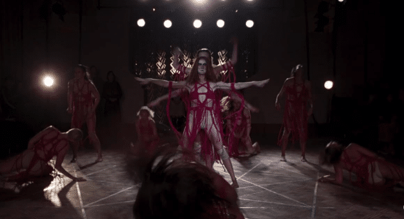 While there's no denying the beauty of Dario Argento's Suspiria, Luca Guadagnino's 2019 reimagining exceeds in expanding on the importance of setting the story in a dance school. Inspired by the art installation “Les Médusés” by choreographer Damien Jalet, who would act as choreographer for the film itself, “Volk” demonstrates the concept of dance as spell work. The dancers use rhythmic movement and breathwork to conjure the energy needed to transfer the spirit of Helena Markos in this soul-stirring scene.
