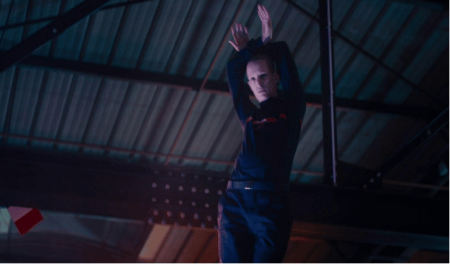 In Titane, dancing signifies another important moment of self-expression for a character whose world has become internal. Numerous scenes in this film feature dancing but usually as a display of hyper-femininity (the dancers at the car show) or hyper-masculinity (the locker room culture being embraced in the firehouse rave). Here, Alexia, now living as Adrien, chooses to move their body in a way that feels the most authentic, disregarding the reactions of those around them and choosing to move freely after spending so much time suppressing themselves.