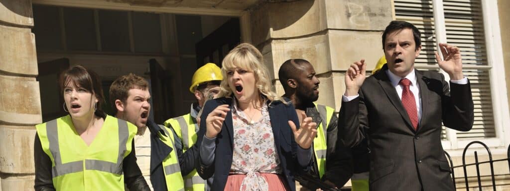Image Credit: IMDB Matthias Hoene directed this British zombie comedy about a bank heist that the robbers try to pull off at the beginning of the zombie apocalypse to save their grandfather's retirement home. The police are called on the robbery, but luckily, the zombie horde eats the police. It's all pretty complicated, but the ZA starts because construction workers break into a catacomb beneath London and are bitten by zombies. The film features stars of British cinema, Honor Blackman, Alan Ford, and Georgina Hale.