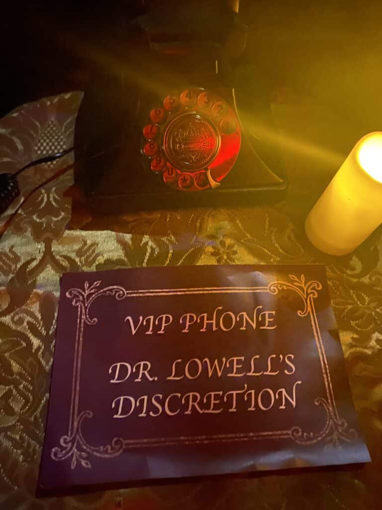 With six groups running through the mansion at a time, it's a small miracle that we never encountered another group. Though if we did, it would be easy enough to dismiss the encounter in the storyline as another group of escaped patients. The meticulous planning that is in play to pull this thing off is impressive (which Braver attributes to Stage Manager Sati Thyme). The actors are top-notch, and aside from knowing their script inside and out, they have to be able to improvise. Braver shared that, at times, actors may be asked to shave a minute off their performance or stretch it out to add a minute or two here and there to keep the flow of guests moving through the space as needed to progress the story. Some of the actors are double (or quadruple) cast to accommodate the multiple groups moving through the house at once, but Braver tries to avoid that when possible, relying on that aforementioned meticulous planning and writing the script in such a way that works in service to the location.