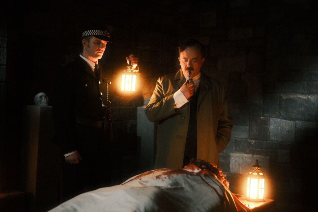 The cast includes Michael Daviot as Helberson, a stern and calculating doctor driven by a morbid curiosity about death; Megan Tremethick (Miss Amicus) as Nurse Charlotte Gibbon, a charming femme fatale with a hidden agenda; Dorian Todd as Mancher, a brash and skeptical young doctor determined to debunk superstitions; and Sam Barclay as Harper, a nervous and superstitious medical assistant who fears the supernatural.