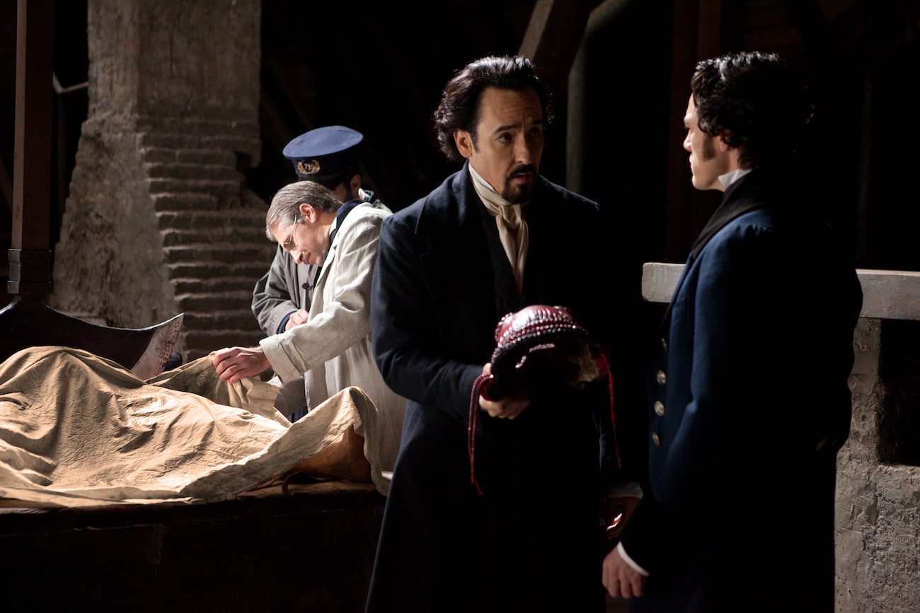 McTEIGUE: John, from the first time I met him, knew a lot about Poe, and we talked about, if he was to play Poe, it would be great for him to get in that space and get in that skin, and he went a long way toward doing that. He lost weight to give himself the drawn sort of Poe look, he grew a goatee and dyed his hair a little blacker than it usually is, to really get into Poe’s physical space. And then, John always talked about how he was friendly with Hunter S. Thompson, and he could see parallels between Hunter and Poe, and I think that helped inform the character for John. So he came to the set sort of fully formed, which was nice.