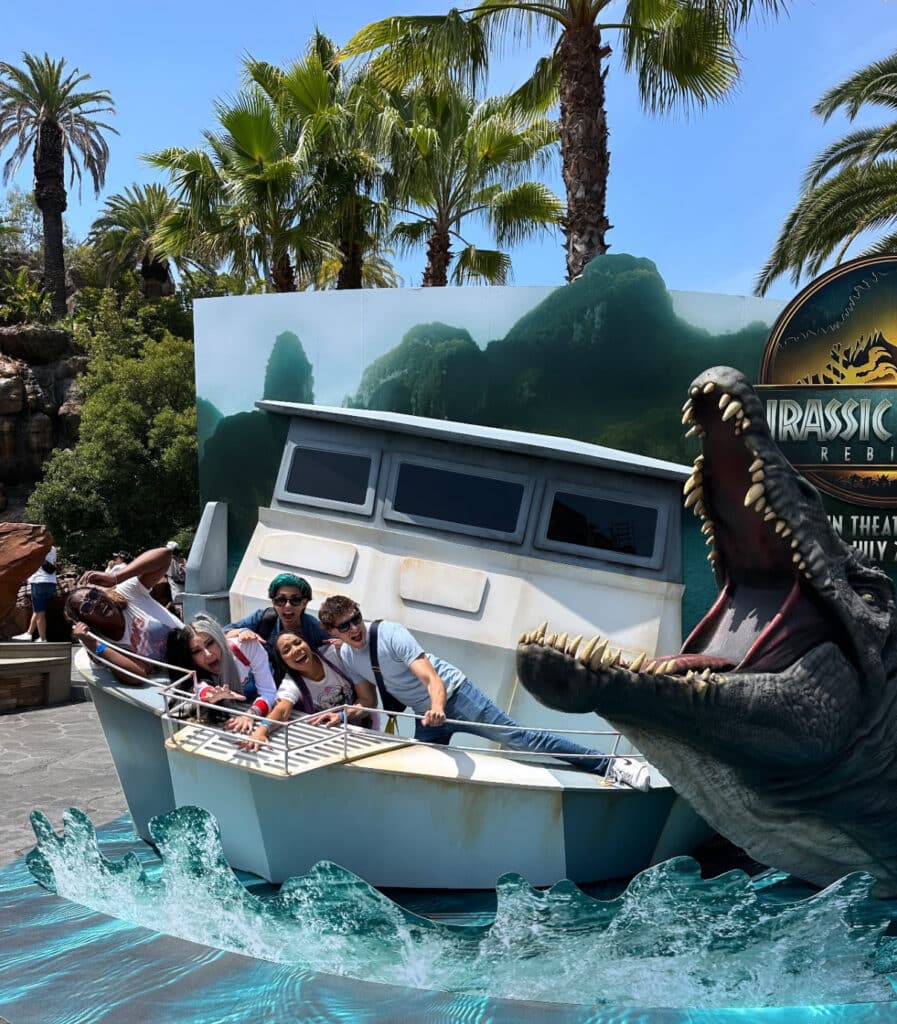 There's also a very cool  Jurassic World Rebirth photo op featuring a horrifying Spinosaurus dinosaur. And you know, it actually lends itself to the experience if you ride Jurassic World first and step into the scene proper misted and wet.