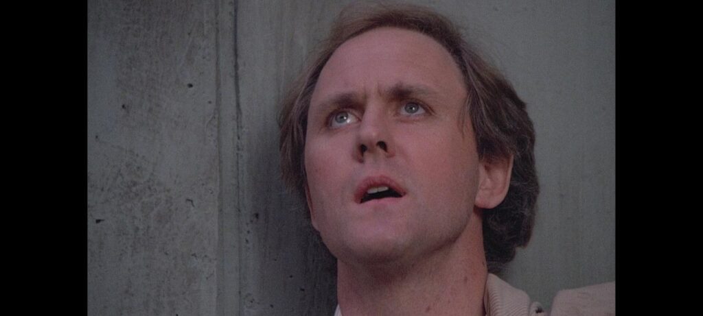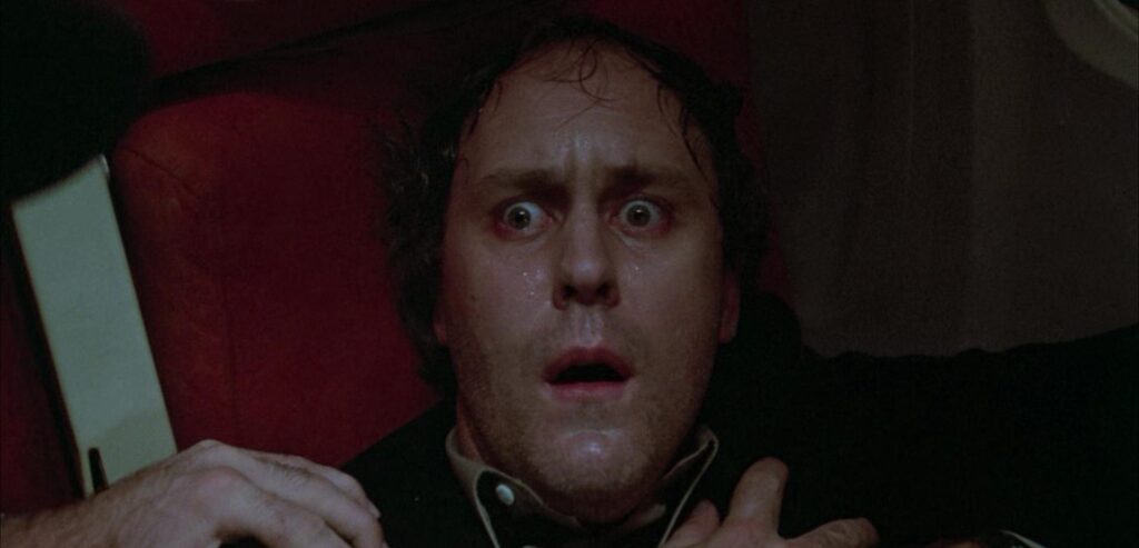 Image Credit: IMDB The segment Nightmare at 20,000 Feet, directed by George Miller and a remake of the Twilight Zone episode of the same name starring William Shatner, shows Lithgow as John Valentine, a man with a severe fear of flying. Valentine notices a creature on the wing after going to the restroom to recover from a panic attack. No one believes him because of his behavior and the extreme fear he has shown during the thunderstorm-menaced flight. Lithgow is the hero, but the extremes of terror he brings to his performance are top-notch. Read more: The Best Horror Anthology Films and Where to Watch Them.
