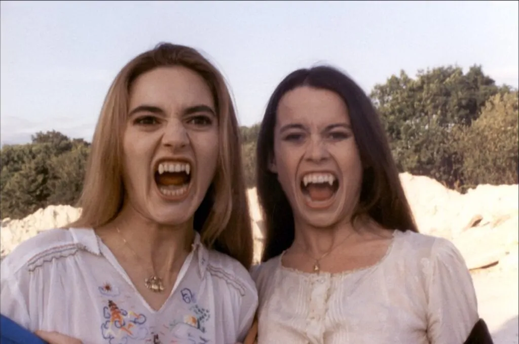 Requiem For A Vampire is my personal favorite Rollin movie, but consider yourself warned: it’s not necessarily a film for the faint of heart. Rollin’s fourth feature is led by Michelle (Mireille D’Argent) and Marie (Marie-Pierre Castel), bestie-lovers who we meet in the middle of a shootout and car chase. On the run for reasons unknown, they also happen to be dressed as the most fashionable clowns you’ve ever seen (think more Bowie, less Art). At least until they shed their costumes and cozy up in a cemetery for the night.