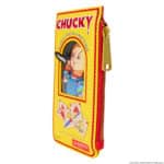 The Good Guy is ready to play up your look. Our Chucky Card Holder, which resembles a Good Guys Chucky doll box, is full of frighteningly fun details. On the front, embroidered letters in red spell out “Chucky,” and the text below reads, “He wants YOU for a best friend.” It also appears that he’s ready to come out of the box, as his applique form “slashes” an applique knife through the clear PVC packaging material. The box also includes pictures of the Good Guys accessories and a message to collect them all. An age range and “warning” sign add realistic details. Secure cards and smaller items for a memorable play date or adventure in style.