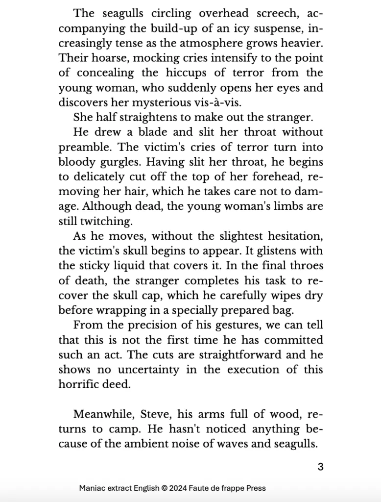 This month, one has arrived all the way from France: Maniac, the first simultaneous publication in English and French by Editions Faute de frappe. The prose translation of William Lustig’s notorious 1981 shocker was written by Stéphane Bourgoin and is now available in hardcover, paperback and Kindle via Amazon.com.