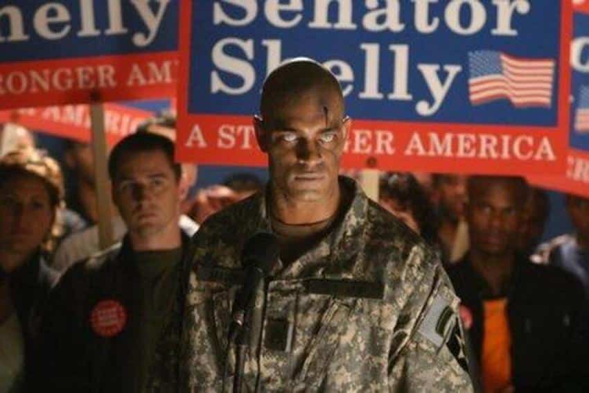 Hamm’s script takes place in the near future, specifically 2008, when a certain Republican president is running for re-election and a war he duped the nation into fighting still rages on. The central characters are campaign consultant David Murch (Jon Tenney) and right-wing author Jane Cleaver (Thea Gill), who has written a popular book attacking the “radical left”—any resemblance to Ann Coulter is, uh, purely coincidental. After meeting on a dead-on parody of an issues-oriented talk show (Terry David Mulligan is perfect as the host), the two find themselves politically and romantically attracted—but their world is shaken up when the dead begin returning to life. Not all the deceased, mind you, just those who were killed in that particular overseas combat, and they’ve got a particular—pardon the pun—ax to grind. It’s an extrapolation of the Vietnam-era ghoul film Deathdream to the nth degree—the image of the first revived corpse pushing its way out from under the Stars and Stripes that cover its casket is the most pointed and arresting image the genre has recently offered.