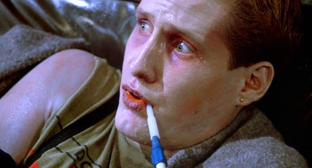 Image Credit: IMDB James Karen, who plays Frank, and Thom Mathews, who plays Freddy, give sympathetic performances which go a long way toward getting the audience more involved with the story and characters. As you watch them get sicker and sicker, you feel for them, and then when Freddy turns into a brain-demanding zombie, it creates another level of horror.