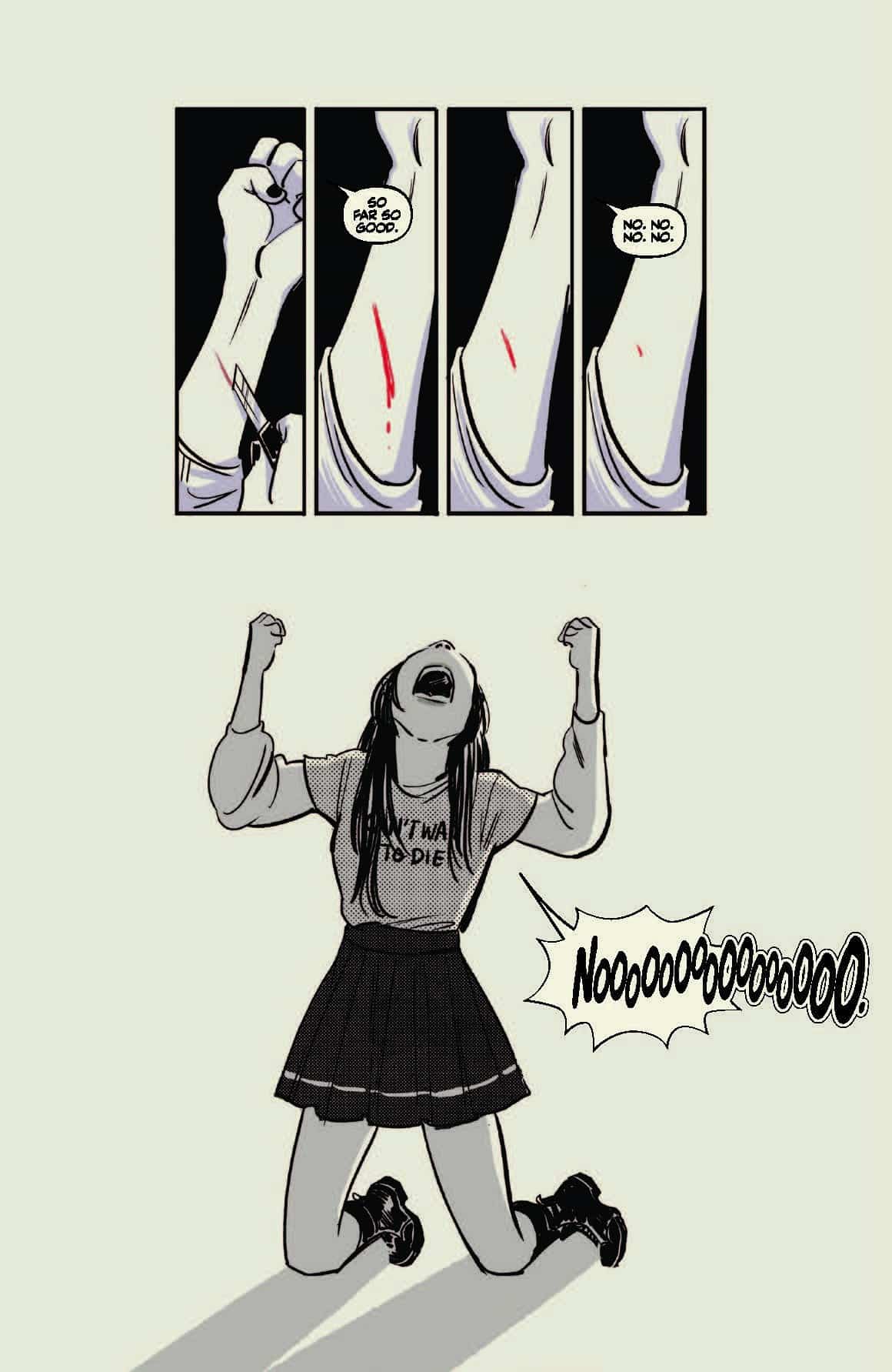 Immortality strikes again! Liv decrees the bearer of the knife shall live, and thus, it is (luckily) so. If you're in the mood for dark humor, light magic, and teen angst, you can pre-order Dying Inside right now from Vault Comics.