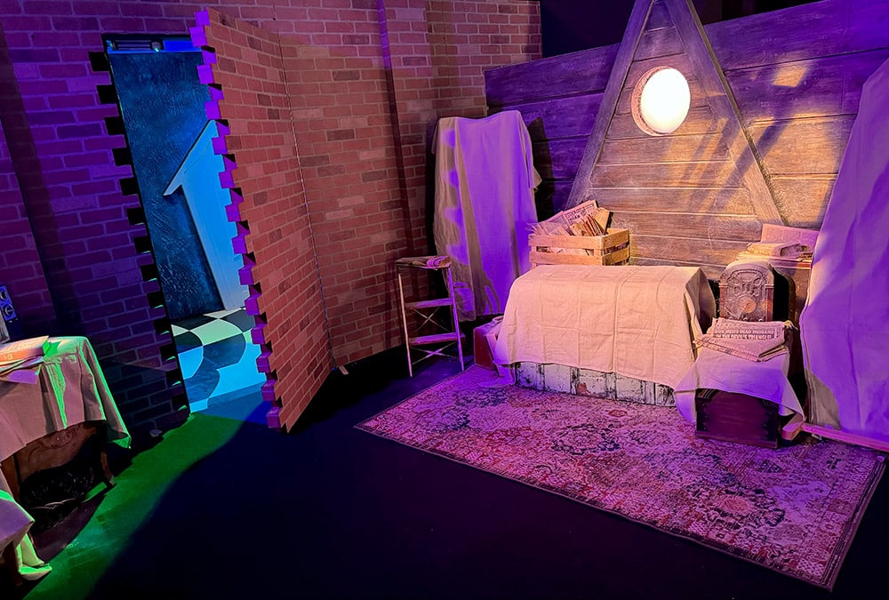 Your journey into the Afterlife begins with a door, of course! Knock three times on the chalk door drawn on the brick wall and cross the threshold. When the door opens, and a soft glow is emitted from the other side, there is a starkly marked moment of Here and There. As you wind your way through the iconic Burton-esque hallways, you'll find yourself in a waiting room with fellow recently deceased guests. Here, you'll grab an official passport, the journey is just beginning.