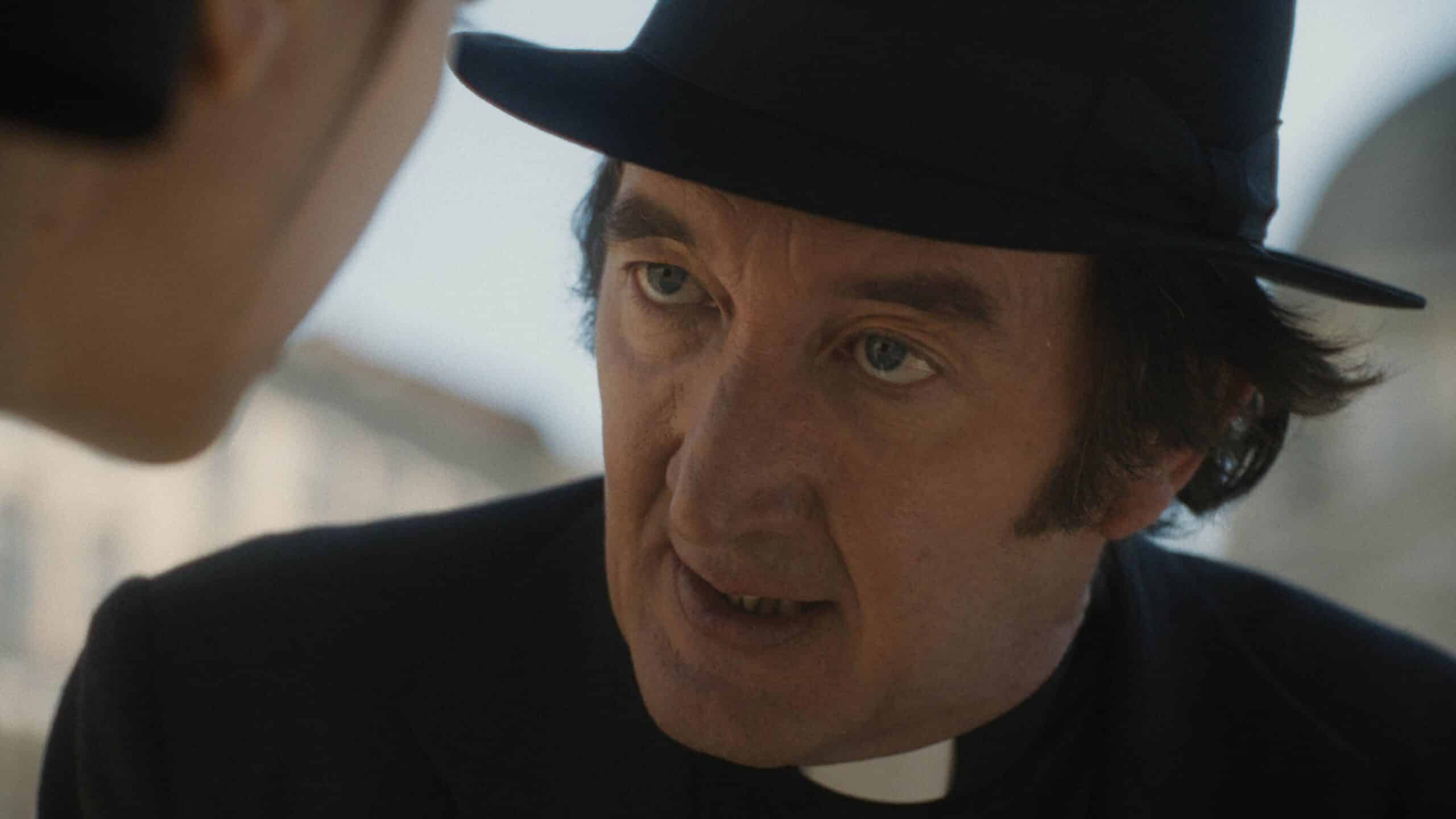 By contrast, Ineson’s physicality and voice are used for kinder purposes in The First Omen. Here, Ineson's frame is utilized to initially instill distrust in protagonist Margaret Daino (Nell Tiger Free). Can she trust this guy spewing conspiracy theories and towering over her? Brennan later becomes a confidante she turns to in times of peril. Now Ineson’s booming voice and tall body are used to quietly suggest a sense of trustworthiness.