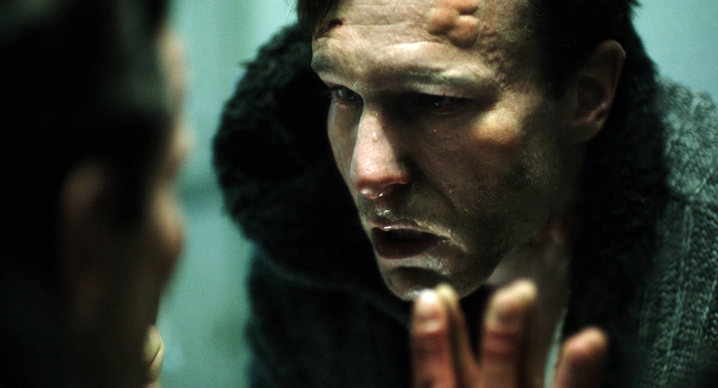 World-premiering at Fantasia, Errors of the Human Body was scripted (with Shane Danielsen) and directed by Eron Sheean, who previously co-wrote The Divide and brought back that film’s most memorable actor, Michael Eklund, to star in this one. As opposed to his unhinged Divide antagonist, here Eklund portrays a more disciplined man of science, geneticist Geoffrey Burton, who is summoned to take part in experiments at a German facility (played by the Max Planck Institute of Molecular Cell Biology and Genetics in Dresden). Particularly driven by the death of his infant son from a rare disorder, which led to the collapse of his marriage, Geoff begins working alongside former intern Rebekka (We Are the Night’s Karoline Herfurth) on a project involving the regeneration of human tissue and body parts. One of their colleagues is Jarek Novak, played by Tomas Lemarquis, whose striking bald-and-blue-eyed visage makes Novak visually cued to be an antagonist—and indeed, Geoff soon comes to believe that he’s pursuing a mysterious agenda of his own.