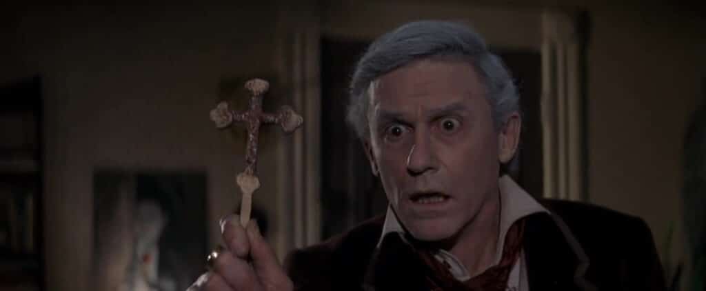 Image Credit: IMDB Of course, we can't go without listing Fright Night because it is one of Roddy McDowall's best-known and beloved roles in horror. As Peter Vincent, he gives the film its horror credibility as an actor who has worked in the genre for twenty years. Vincent is so appealing even when he is trying to avoid helping Charley Brewster (William Ragsdale), Amy Peterson (Amanda Bearse), and Edward “Evil Ed” Thompson (Stephen Jeffreys) with their vampire problem. He's a great foil for Jerry Dandridge (Chris Sarandon) and Evil Ed, when he turns vamp himself.