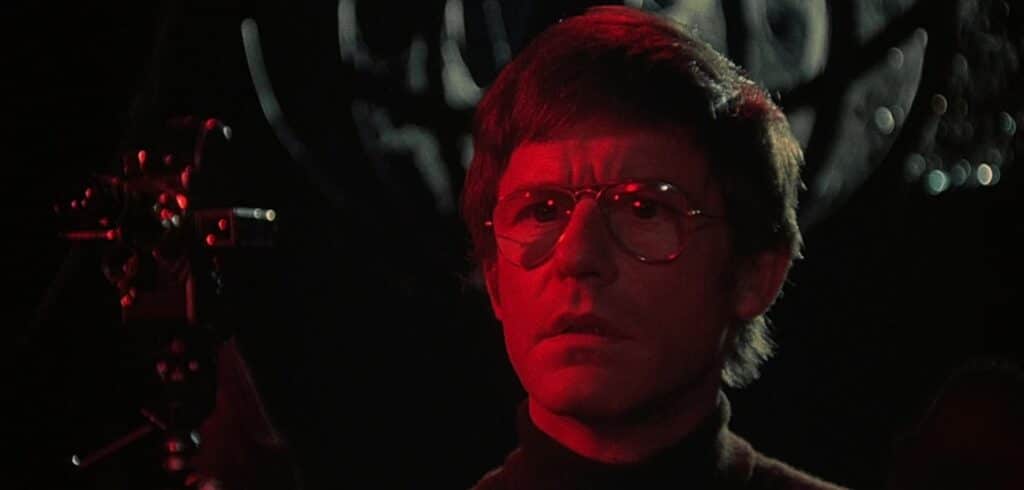 Image Credit: IMDB Laserblast is an independent fright film about a young man, Kim Milford, as Billy Duncan, who finds a laser cannon in the desert. Charles Band produced the film, and Michael Rae directed it. Roddy McDowall plays Doctor Mellon, whom Billy goes to when he gets sick. The doctor removes a metal disc from his chest, but later that night, a green-skinned Billy returns and kills the doctor by using the laser cannon to explode his car. After that, Billy returns to normal bbecomesnto a crazed killer when his girlfriend puts the pendant back on him.