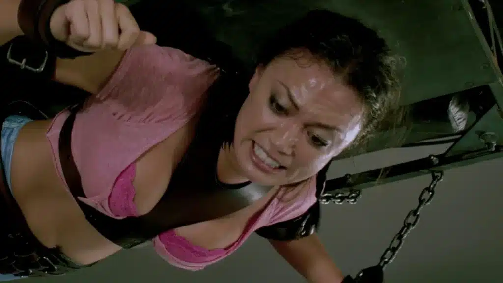One of the only times that this formula is broken in the oddly prescient cold open of the otherwise forgettable Saw 3D, which sees the two-timing Dina (Anne Greene) suspended above a whirling circular saw steered by her confused boyfriends (Sebastion Pigott and Jon Cor). The setting makes the scene unique: the three lovers are on display in a glass box in a busy public square for onlookers to ogle. The intergenerational crowd barely attempts to rescue the doomed trio before whipping out their mobile devices to record the carnage.