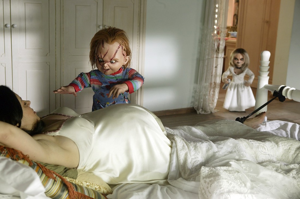 Mancini also clearly loves the genre, as his lengthy opening setpiece pays tribute to Halloween and Psycho, though only after an audacious title sequence that takes the viewer along for the miracle of conception and birth, Chucky-style. The result is a living-doll offspring (voiced by Billy Boyd) who somehow finds himself, years later, as the pawn of a sleazy, third-rate British magician who uses him to try to win an international ventriloquism competition. After discovering that a movie is being made in Hollywood about Chucky and his “bride” Tiffany’s exploits, the little guy realizes that they must be his parents, escapes his captor and makes his way to Tinseltown. One of the stars of that film, meanwhile, is Jennifer Tilly (playing Jennifer Tilly), who despairs of doing horror flicks and would really like to win the lead in a Biblical epic directed by rapper-turned-actor-turned filmmaker Redman. It’s a measure of Mancini’s deftness that he convinces us to believe in a world where Redman could direct a Biblical epic—not to mention one in which there are international ventriloquism competitions.