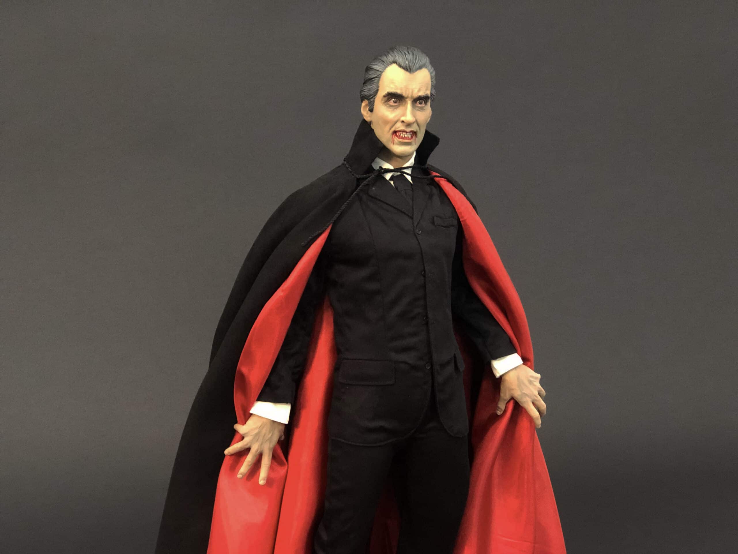 The hands are designed to wrap themselves around the flowing red cape. Fans of Lee's performance will note how exact the stance is, undeniably evoking the actor who made Dracula his own.