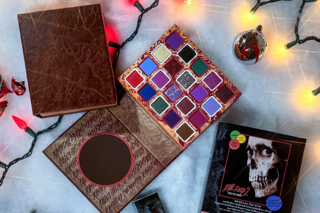 From Creature Cosmetics Dip your chainsaws into this 20 shade eyeshadow palette, featuring an engraved faux-leather bound cover, and realistic book thickness! Summon some Deadites, create some bold looks, and maybe even do a little time travel, with the Necronomicon Ex-Mortis makeup palette! WARNING: Deadites NOT included. Shop Now